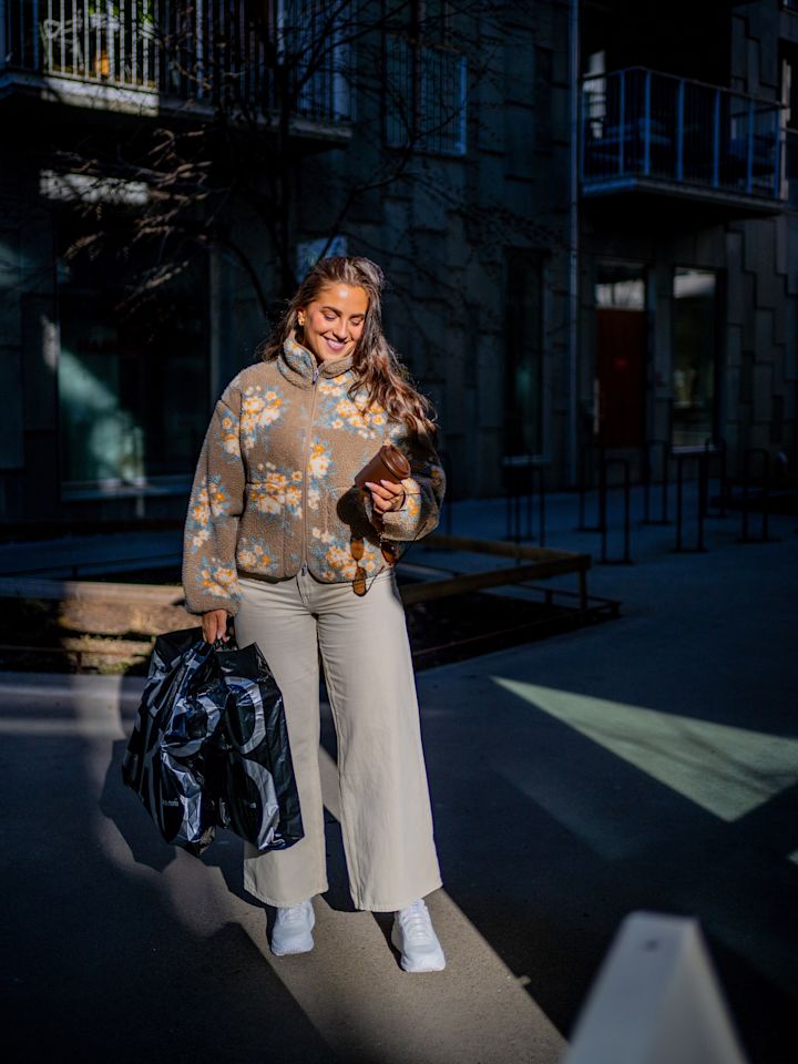 – Jag går mycket, och vill ha kläder och skor som funkar hela dagen. Jag gillar det sportiga, men försöker göra det lite mer "fashionable", säger hon och ler.